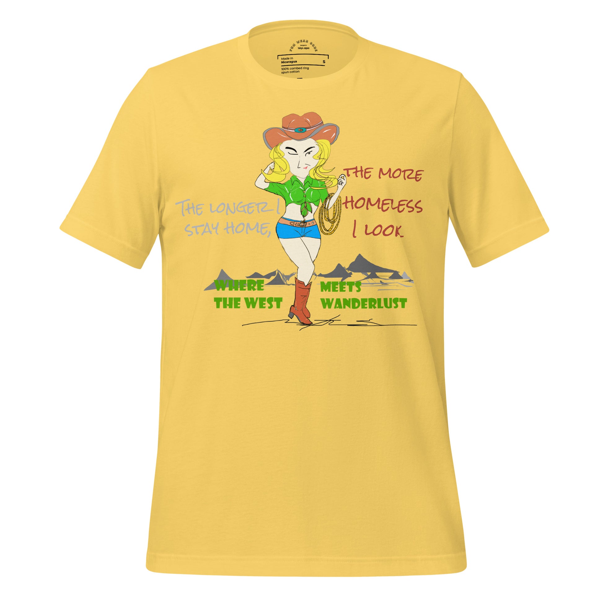 The ultimate 100% cotton tee that delivers on every promise. Pre-shrunk fabric maintains its shape through countless washes, while side-seamed construction creates a flattering silhouette that actually fits. The striking American cowgirl graphic brings bold, mysterious energy to your everyday rotation—perfect for anyone who wants to channel that wild, confident spirit. This is the tee you'll reach for again and again, whether you're embracing your inner cowgirl or simply demanding better from your basics.