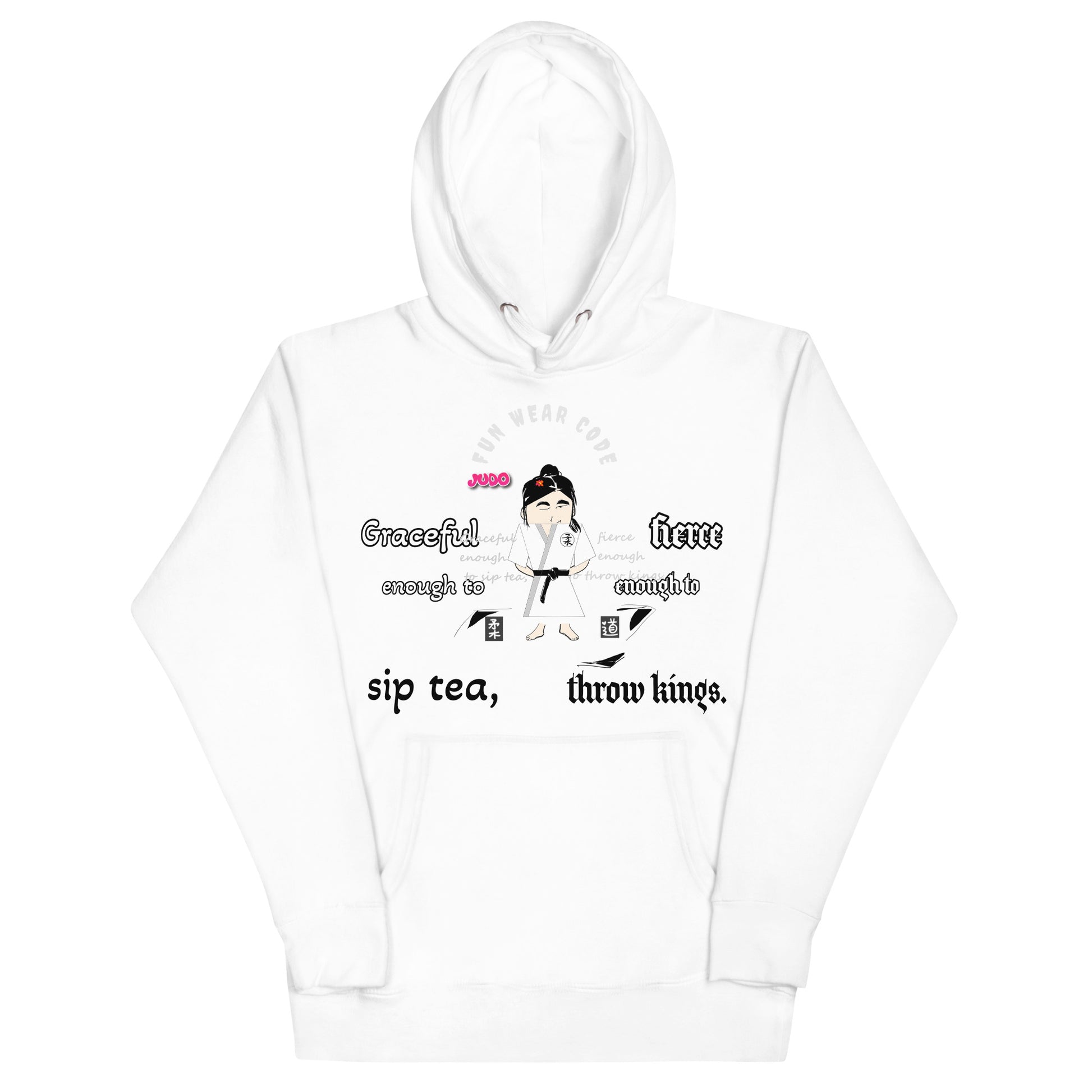 Ready to level up your casual wardrobe? This premium hoodie combines high-quality cotton with a comfort-fitted design that feels as good as it looks. The matching drawstrings and front pocket add practical style, while the whimsical judo lady graphic brings playful personality to your everyday wear. Perfect for martial arts enthusiasts or anyone who loves lighthearted, fun fashion. Slip it on and make a statement.