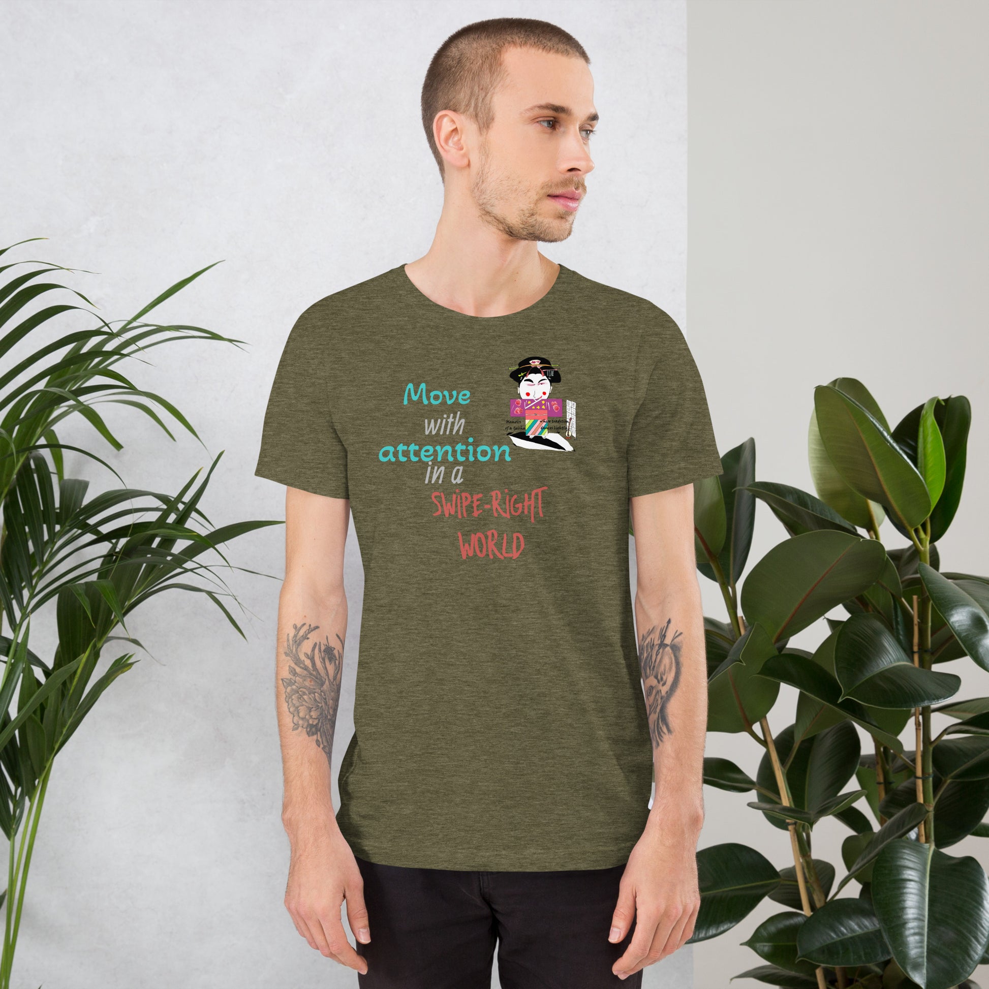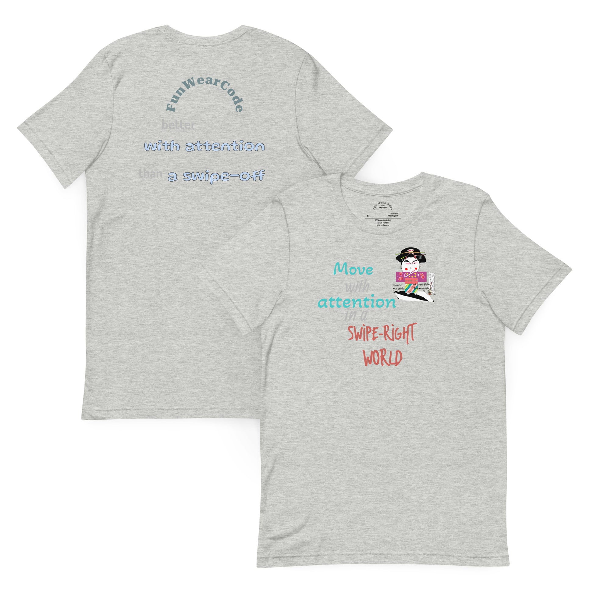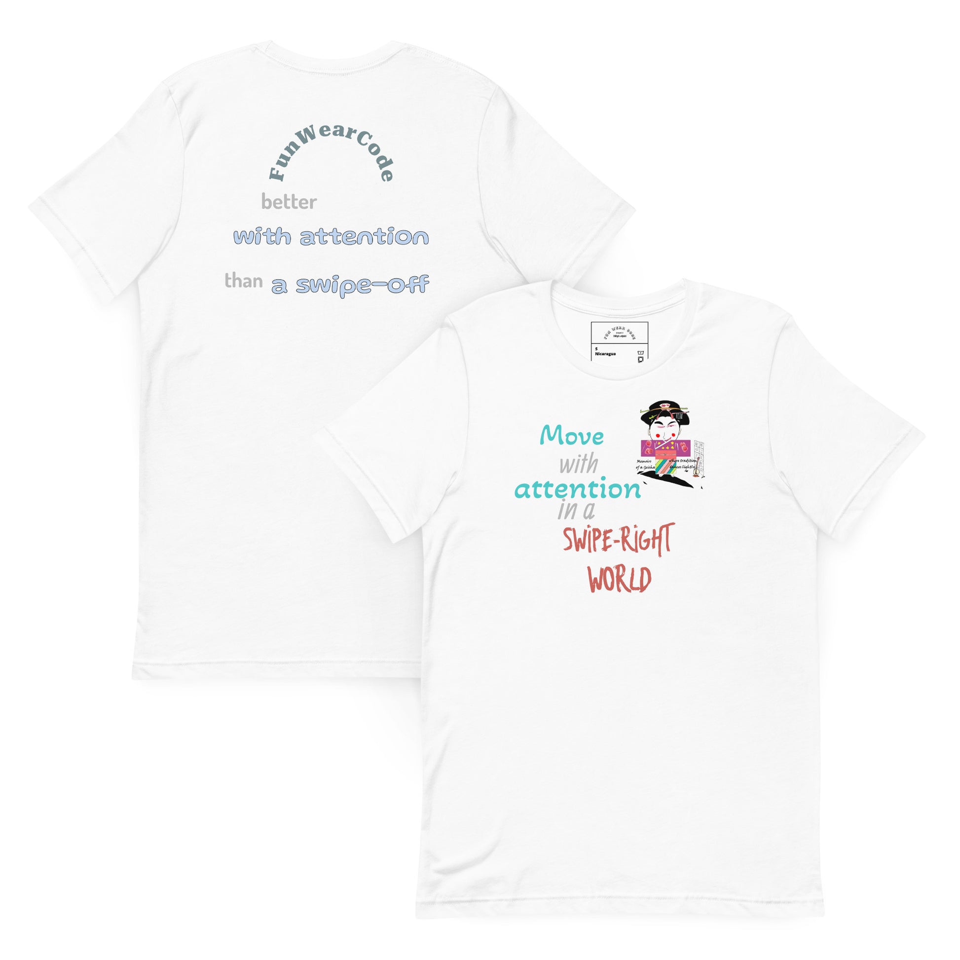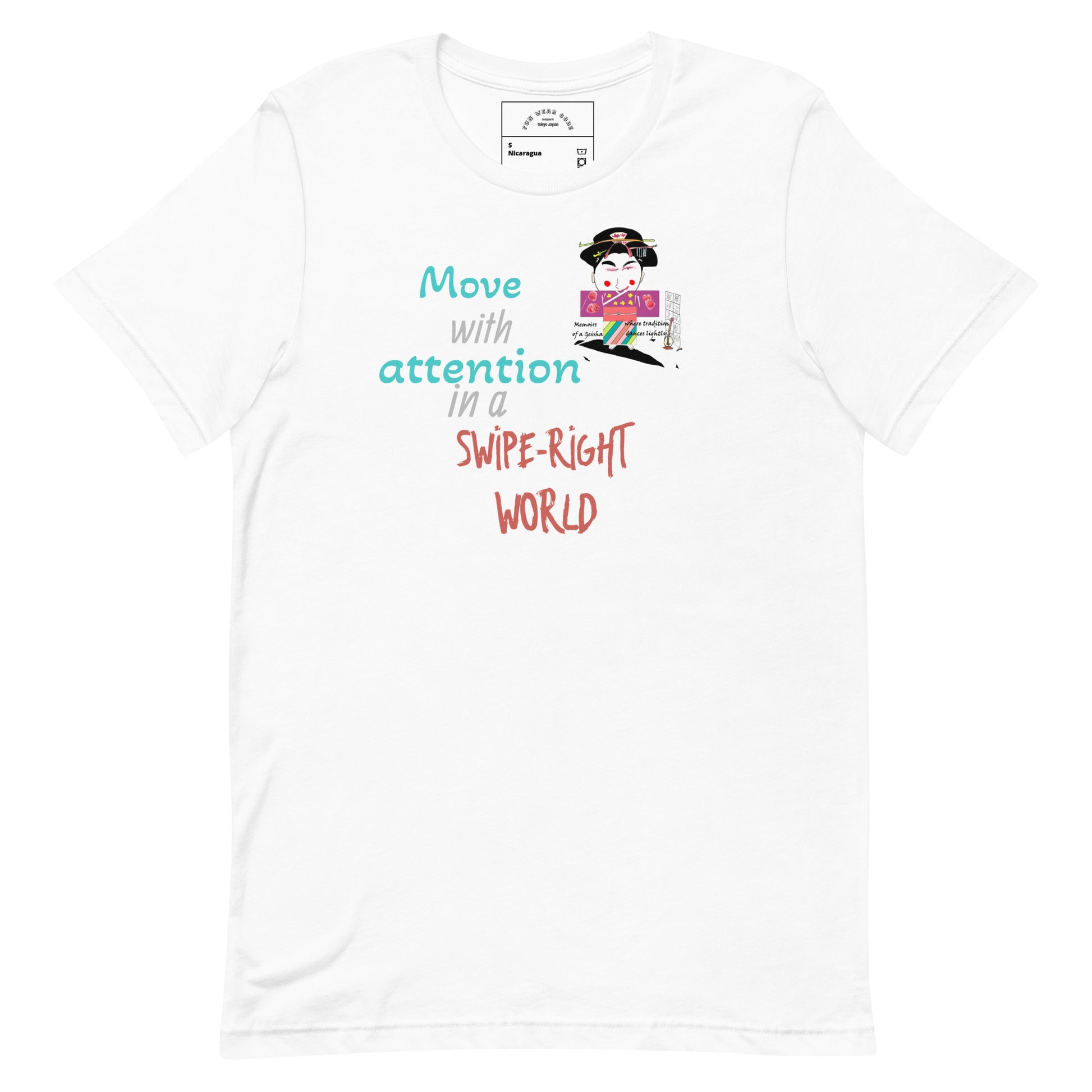 Elevate your everyday wardrobe with this sophisticated unisex tee that seamlessly merges cultural heritage with contemporary flair. Crafted from lightweight cotton, it delivers comfort without compromise. The design draws inspiration from Japanese tradition and the acclaimed film "Memoirs of a Geisha," presenting classic cultural motifs through a modern, playful lens. Perfect for those who appreciate thoughtful design and meaningful storytelling in their clothing, this piece serves as both a versatile staple and an engaging conversation starter. Ideal for layering or wearing solo, it brings understated elegance to casual occasions.